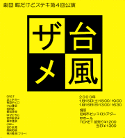 ![]() | 劇団暇だけどステキ第4回公演 「台風ザメ」 2000.1/15(Sat)--1/16(Sun) 作・演出:飯島和敏 観客動員 405名くらい ピッコロシアター中ホール |